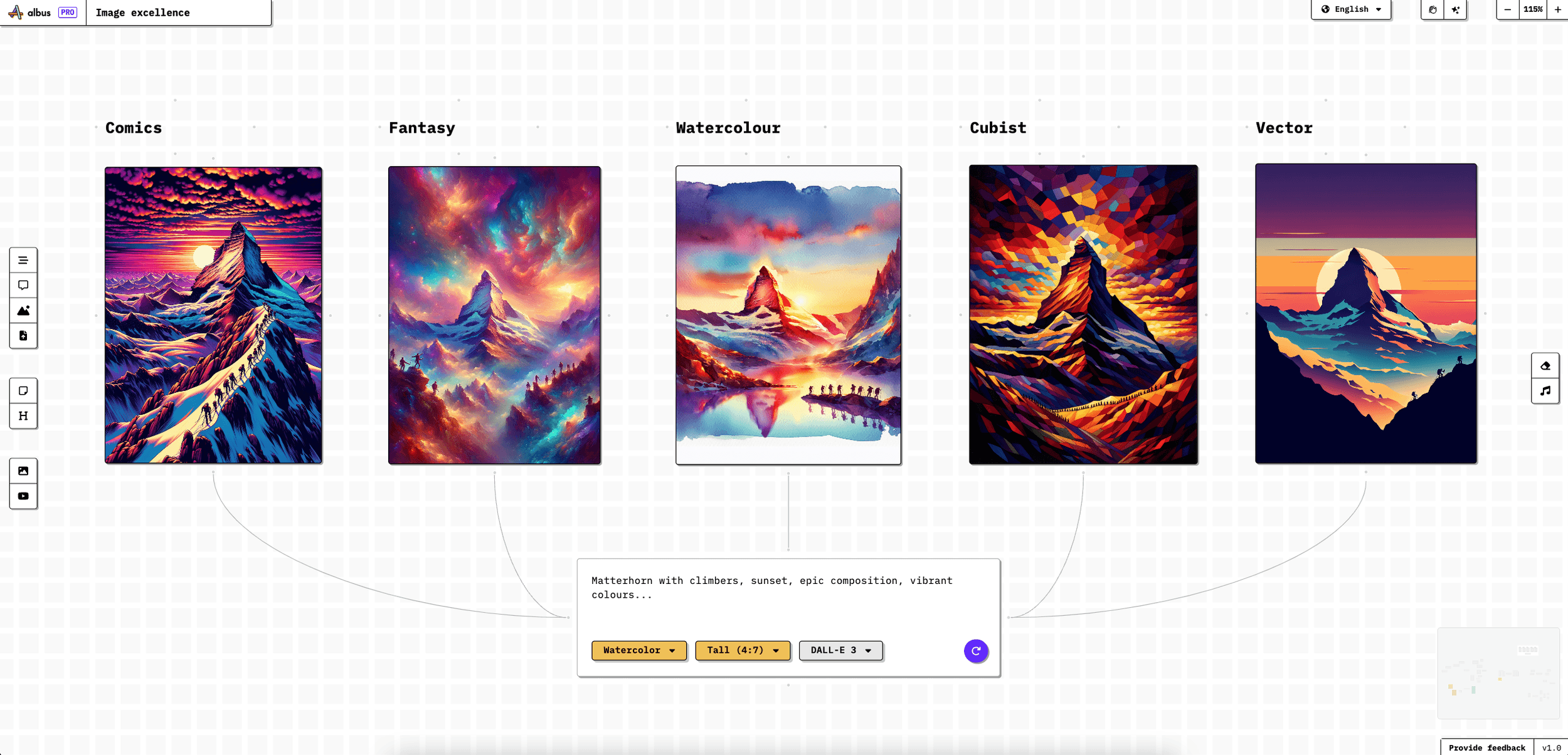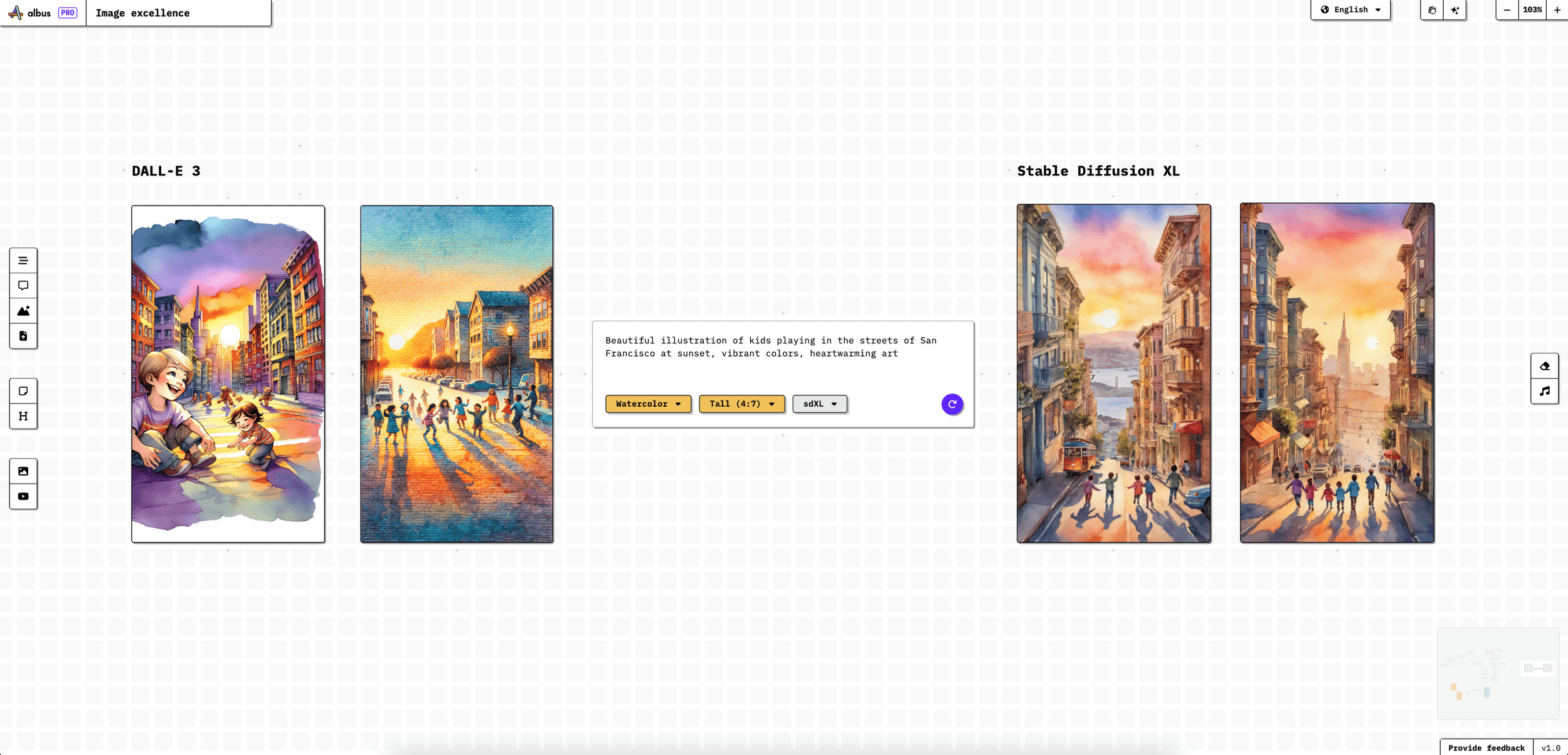 Create image variations, make comparisons with few clicks. Each image generation engine has its own strengths, and you will be able to see all of them together.