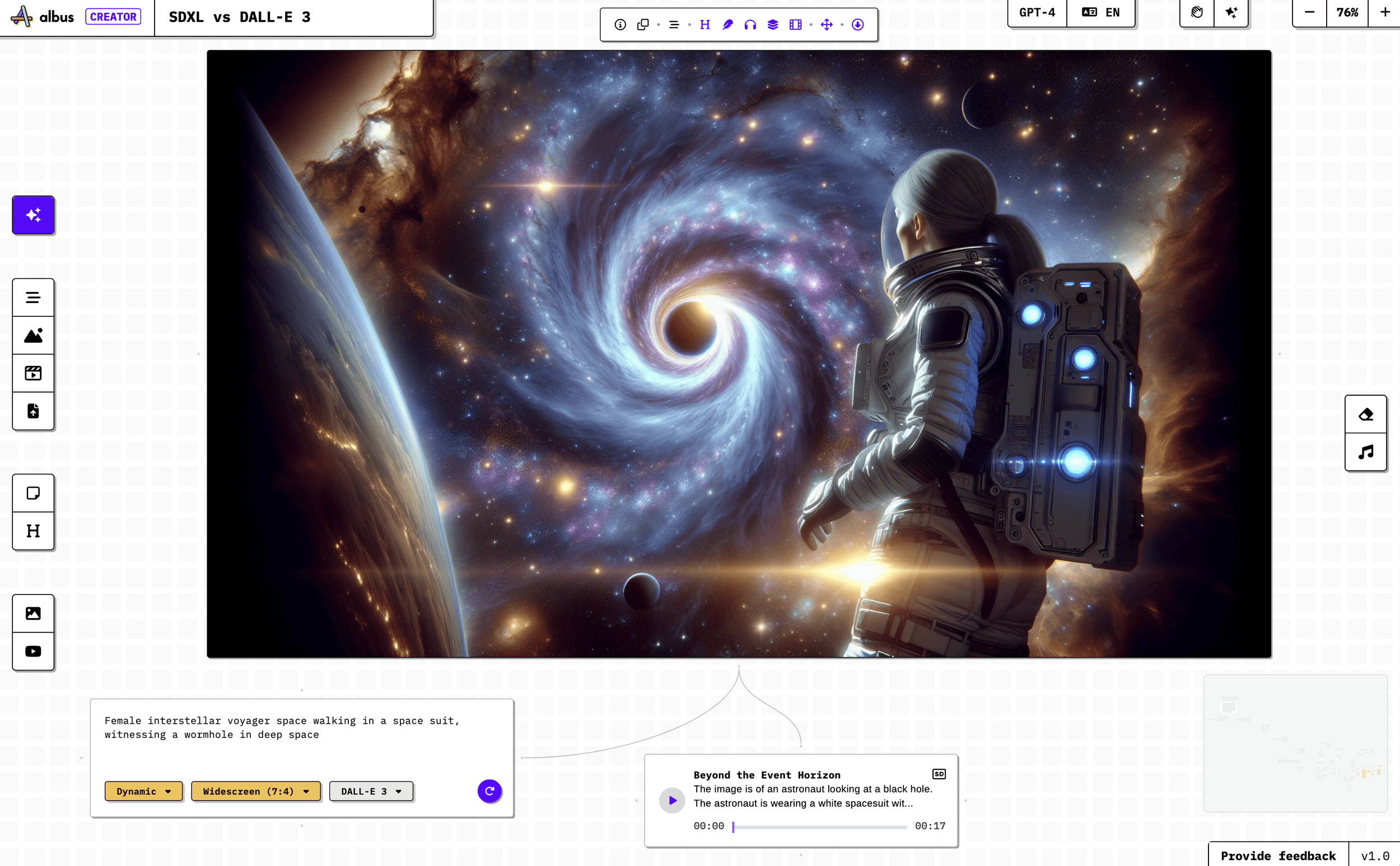 One of the best potential use cases of DALL-E 3 might be creating dramatic cover images for various forms of content, like cover images for e-books, audibles, podcasts, and web articles. With a 600-image creation allowance, your annual Albus subscription gives you room to produce a lot!