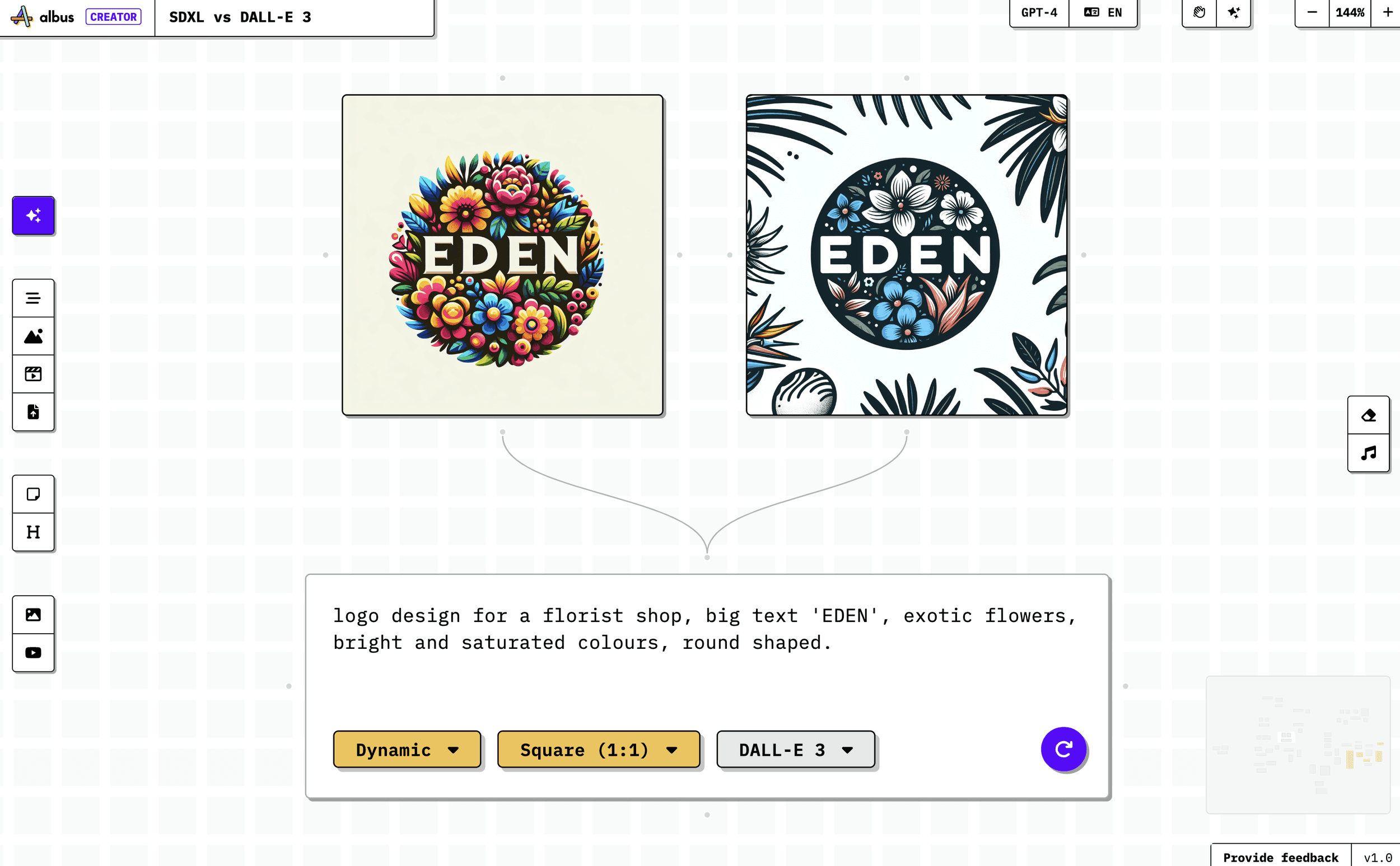 Prompt: ‘Logo design for a florist shop, big text 'EDEN', exotic flowers, bright and saturated colours, round shaped.’